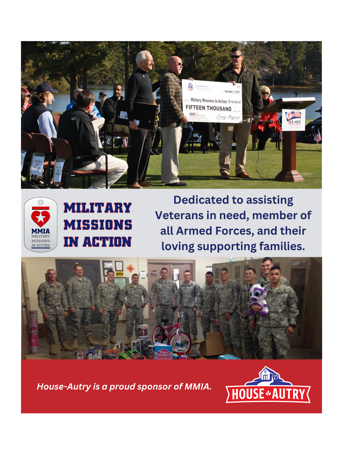 We love and value our community at House-Autry. Which drives our support of disabled veterans and active service men and women through organizations like Military Missions In Action.