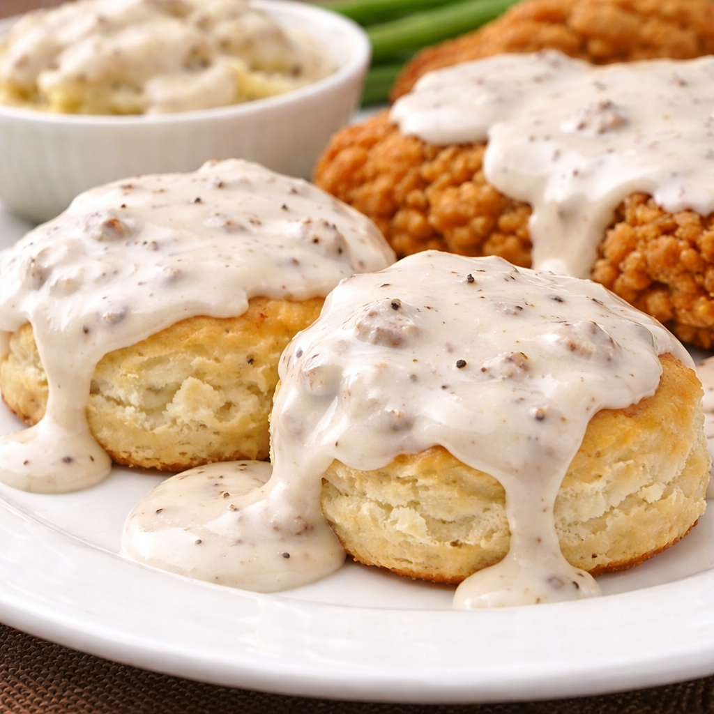 - Creamy white gravy texture